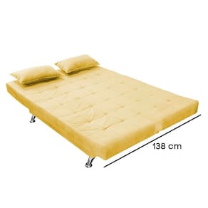 Altura: 105 cm Largura: 182 cm Profundidade: 60 cm Altura do chão ao Assento: 44 cm Altura dos pés: 10,5 cm Largura do Encosto: 182 cm Altura do Encosto: 60 cm Largura do Assento: 182 cm Altura do Assento: 44 cm Peso: 30 Kg Peso Suportado: 200 Kg Dimensões (Modo Cama):