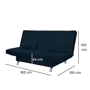 Altura: 105 cm Largura: 182 cm Profundidade: 60 cm Altura do chão ao Assento: 44 cm Altura dos pés: 10,5 cm Largura do Encosto: 182 cm Altura do Encosto: 60 cm Largura do Assento: 182 cm Altura do Assento: 44 cm Peso: 30 Kg Peso Suportado: 200 Kg Dimensões (Modo Cama):