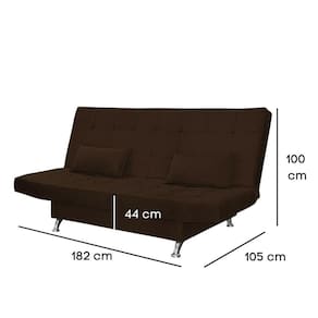 Altura: 105 cm Largura: 182 cm Profundidade: 60 cm Altura do chão ao Assento: 44 cm Altura dos pés: 10,5 cm Largura do Encosto: 182 cm Altura do Encosto: 60 cm Largura do Assento: 182 cm Altura do Assento: 44 cm Peso: 30 Kg Peso Suportado: 200 Kg Dimensões (Modo Cama):