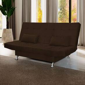 Sofá Cama Casal Com Almofadas Rivera Suede Marrom Escuro