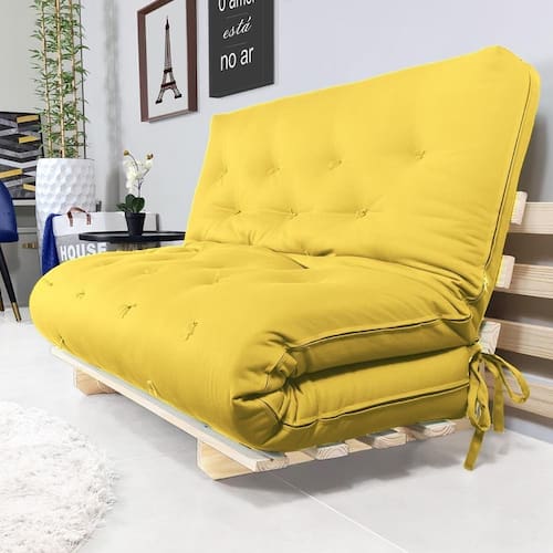 Produto precisa de ?: Necessita | Cor: Amarelo | Material para Filtro: Sofa Futon | Estado de Origem: Nacional | Conteúdo da Embalagem: 1 Sofá | Altura do Produto: 44 | Instruções/Cuidados: Limpar com pano úmido | Comprimento do Produto: 190 | Peso do Produto: 19 | Largura do Produto: 130 | Descrição do Tamanho: Altura 44 cm x Largura 130 cm x Profundidade 130 cm | Nome do Simples no Fornecedor: R9 Design Futon | BoxHeight: 53.00 | BoxLength: 90.00 | BoxWeight: 25.00 | BoxWidth: 130.00