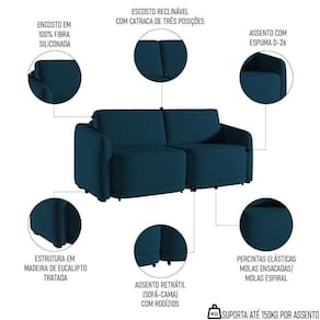 Renove sua sala de estar com o Sofá Cama Casal para Sala 176cm Polska K04 Veludo Azul, da Mpozenato.