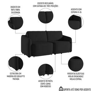 Essa peça impressionante foi projetada para trazer conforto e estilo ao seu espaço, principalmente com o recurso retrátil, em que você pode ajustar facilmente o sofá para atender às suas necessidades de assento, além de aproveitá-lo como cama e acomodar perfeitamente as suas visitas. Isso porque, a espuma D26 garante o máximo de conforto, enquanto o revestimento de alto padrão acrescenta um toque de elegância. Seja para assistir a um filme ou para receber convidados, esse sofá 2 lugares será o complemento perfeito para a sua sala de estar.