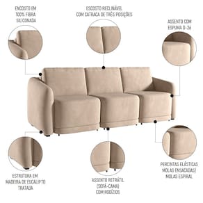 Essa peça impressionante foi projetada para trazer conforto e estilo ao seu espaço, principalmente com o recurso retrátil, em que você pode ajustar facilmente o sofá para atender às suas necessidades de assento, além de aproveitá-lo como cama e acomodar perfeitamente as suas visitas. Isso porque, a espuma D26 garante o máximo de conforto, enquanto o revestimento de alto padrão acrescenta um toque de elegância. Seja para assistir a um filme ou para receber convidados, esse sofá 3 lugares será o complemento perfeito para a sua sala de estar.