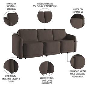 Essa peça impressionante foi projetada para trazer conforto e estilo ao seu espaço, principalmente com o recurso retrátil, em que você pode ajustar facilmente o sofá para atender às suas necessidades de assento, além de aproveitá-lo como cama e acomodar perfeitamente as suas visitas. Isso porque, a espuma D26 garante o máximo de conforto, enquanto o revestimento de alto padrão acrescenta um toque de elegância. Seja para assistir a um filme ou para receber convidados, esse sofá 3 lugares será o complemento perfeito para a sua sala de estar.