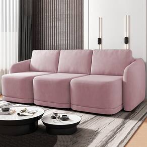 Renove sua sala de estar com o Sofá Cama Casal para Sala 276cm Polska K04 Veludo Rosê, da Mpozenato.