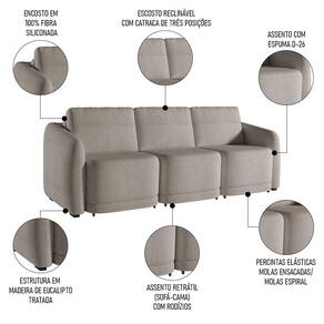 Essa peça impressionante foi projetada para trazer conforto e estilo ao seu espaço, principalmente com o recurso retrátil, em que você pode ajustar facilmente o sofá para atender às suas necessidades de assento, além de aproveitá-lo como cama e acomodar perfeitamente as suas visitas. Isso porque, a espuma D26 garante o máximo de conforto, enquanto o revestimento de alto padrão acrescenta um toque de elegância. Seja para assistir a um filme ou para receber convidados, esse sofá 3 lugares será o complemento perfeito para a sua sala de estar.