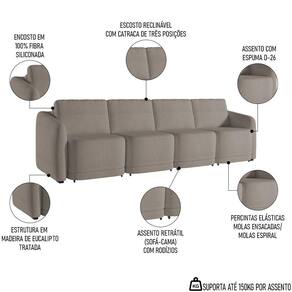 Essa peça impressionante foi projetada para trazer conforto e estilo ao seu espaço, principalmente com o recurso retrátil, em que você pode ajustar facilmente o sofá para atender às suas necessidades de assento, além de aproveitá-lo como cama e acomodar perfeitamente as suas visitas. Isso porque, a espuma D26 garante o máximo de conforto, enquanto o revestimento de alto padrão acrescenta um toque de elegância. Seja para assistir a um filme ou para receber convidados, esse sofá 4 lugares será o complemento perfeito para a sua sala de estar.