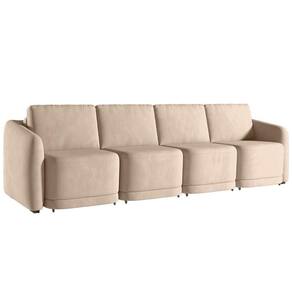 Renove sua sala de estar com o Sofá Cama Casal para Sala 316cm Polska K04 Veludo Bege, da Mpozenato.