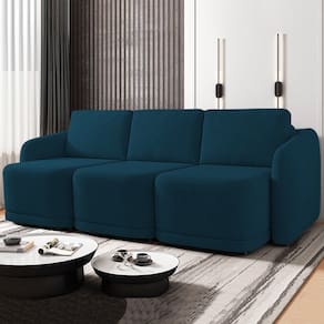 Renove sua sala de estar com o Sofá Cama Casal para Sala 336cm Polska K04 Veludo Azul, da Mpozenato.
