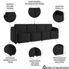 Essa peça impressionante foi projetada para trazer conforto e estilo ao seu espaço, principalmente com o recurso retrátil, em que você pode ajustar facilmente o sofá para atender às suas necessidades de assento, além de aproveitá-lo como cama e acomodar perfeitamente as suas visitas. Isso porque, a espuma D26 garante o máximo de conforto, enquanto o revestimento de alto padrão acrescenta um toque de elegância. Seja para assistir a um filme ou para receber convidados, esse sofá 4 lugares será o complemento perfeito para a sua sala de estar.