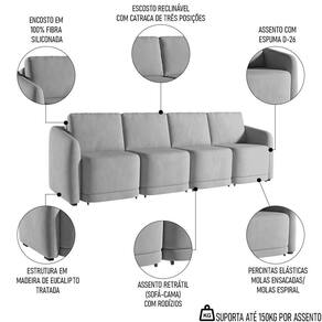 Essa peça impressionante foi projetada para trazer conforto e estilo ao seu espaço, principalmente com o recurso retrátil, em que você pode ajustar facilmente o sofá para atender às suas necessidades de assento, além de aproveitá-lo como cama e acomodar perfeitamente as suas visitas. Isso porque, a espuma D26 garante o máximo de conforto, enquanto o revestimento de alto padrão acrescenta um toque de elegância. Seja para assistir a um filme ou para receber convidados, esse sofá 4 lugares será o complemento perfeito para a sua sala de estar.