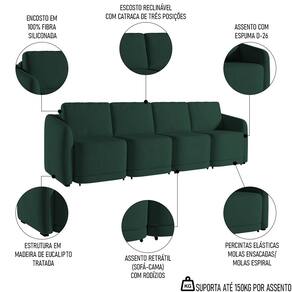 Essa peça impressionante foi projetada para trazer conforto e estilo ao seu espaço, principalmente com o recurso retrátil, em que você pode ajustar facilmente o sofá para atender às suas necessidades de assento, além de aproveitá-lo como cama e acomodar perfeitamente as suas visitas. Isso porque, a espuma D26 garante o máximo de conforto, enquanto o revestimento de alto padrão acrescenta um toque de elegância. Seja para assistir a um filme ou para receber convidados, esse sofá 4 lugares será o complemento perfeito para a sua sala de estar.