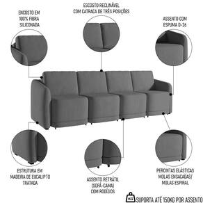 Essa peça impressionante foi projetada para trazer conforto e estilo ao seu espaço, principalmente com o recurso retrátil, em que você pode ajustar facilmente o sofá para atender às suas necessidades de assento, além de aproveitá-lo como cama e acomodar perfeitamente as suas visitas. Isso porque, a espuma D26 garante o máximo de conforto, enquanto o revestimento de alto padrão acrescenta um toque de elegância. Seja para assistir a um filme ou para receber convidados, esse sofá 5 lugares será o complemento perfeito para a sua sala de estar.
