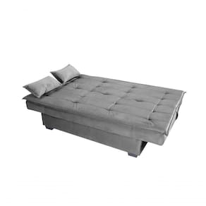 Sofá cama ESMERALDA oferece o diferencial de abertura onde com sistema de catraca de três pinos, dispõe de 03 posições (sentado, leitura e descanso). Este sofá é produzido com madeira de reflorestamento, possui sistema de molas espirais e espuma de ótima qualidade, pode acomodar até três pessoas como sofá e duas como cama, acompanha duas almofadas. Suporta até 100 kg por assento.