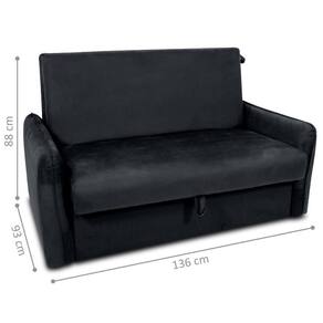QUANTIDADE DE LUGARES: 2 | ALTURA DO PRODUTO COM EMBALAGEM (CM): 90 | COMNTO DO PRODUTO (CM): 93 | COMNTO PRODUTO COM EMBALAGEM (CM): 95 | CONTEÚDO DA EMBALAGEM: 1 Sofá cama | CORES DO PRODUTO (FILTRO DE CORES): Preto | COR PREDOMINANTE: Preto | DESCRIÇÃO DO TAMANHO: 88x136x93 cm | ESTADO DE ORIGEM: PR | INSTRUÇÕES/CUIDADOS: Limpar com pano macio e seco, não utilizar produtos abrasivos | LARGURA DO PRODUTO (CM): 136 | LARGURA PRODUTO COM EMBALAGEM (CM): 138 | MARCA: CasaH | MATERIAL PARA FILTRO: Veludo | MATERIAL PRINCIPAL: Veludo | PESO DO PRODUTO (KG): 49 | PESO PRODUTO COM EMBALAGEM (KG): 51 | PESO SUPORTADO(KG):: 110kg | PRODUTO: Sofá cama | PRODUTO PRECISA DE MONTAGEM?: Sugerimos a contratação de um montador para a montagem do produto. Não nos responsabilizamos por causadas no ato da montagem. | ALTURA DO PRODUTO (CM): 88 | QUANTIDADES DE CAIXAS DE EMBALAGEM: 1