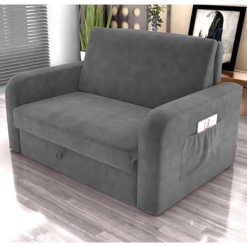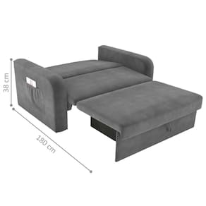 Sofá Cama Com Baú 2 Lugares John Veludo Cinza