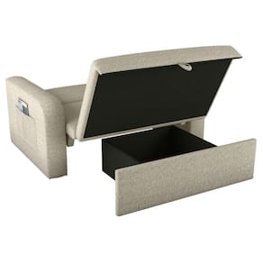 Material do tecido é Linho. Contém um baú para facilitar o armazenamento de cobertas e travesseiros. Espuma D23 Braças, D20 Assento e encosto.