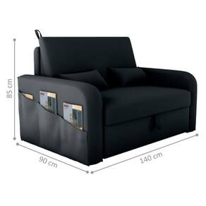 Requer montagem: Sim | Inclui manual de montagem: Sim | Quantidade de caixas de embalagem: 1 | Comprimento: 85 | Profundidade: 85 | Altura: 85 | Largura: 140 | MATERIAL PRINCIPAL: Veludo | COR PREDOMINANTE: Preto | PESO SUPORTADO(KG):: 110kg | ALTURA DO PRODUTO COM EMBALAGEM (CM): 90 | LARGURA PRODUTO COM EMBALAGEM (CM): 145 | COMPRIMENTO PRODUTO COM EMBALAGEM (CM): 87 | PESO PRODUTO COM EMBALAGEM (KG): 52 | PESO DO PRODUTO (KG): 49 | ALTURA DO PRODUTO (CM): 85 | CORES DO PRODUTO (FILTRO DE CORES): Preto | MATERIAL PARA FILTRO: VELUDO | PRODUTO PRECISA DE MONTAGEM?: Sugerimos a contratação de um montador para a montagem do produto. Não nos responsabilizamos por causadas no ato da montagem. | CONTEÚDO DA EMBALAGEM: 1 Sofá cama | PRODUTO: Sofá cama | QUANTIDADES DE CAIXAS DE EMBALAGEM: 1 | INSTRUÇÕES/CUIDADOS: Limpar com pano macio e seco, não utilizar produtos abrasivos | ESTADO DE ORIGEM: PR | DESCRIÇÃO DO TAMANHO: 85x140x85 cm | LARGURA DO PRODUTO (CM): 140 | COMPRIMENTO DO PRODUTO (CM): 85