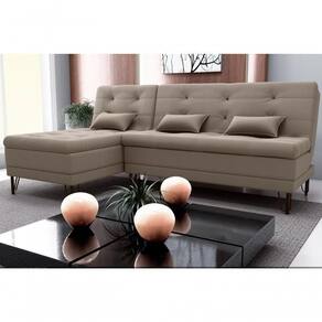 sofá cama nice c/ chaise oferece o diferencial de abertura por catraca,mecanismo de movimento e fixação assento/encosto, de fácil manuseio, prático e design moderno. dispõe de 03 posições (sentado, leitura e descanso). este sofá é produzido com madeira de reflorestamento, possui sistema de molas espirais e espuma de ótima, qualidade, pode acomodar até três pessoas como sofá e duas como cama, acompanha três, almofadas. suporta até 110 kg por assento.
