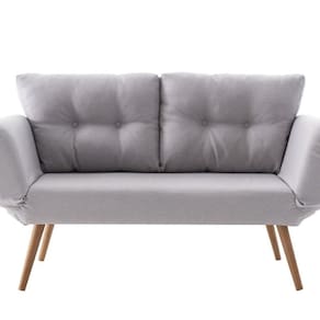 Fabricado com madeira de eucalipto, revestido com espuma D28 e tecido, o sofá-cama Adele, é uma peça multifuncional servindo como sofá, cama de solteiro e até mesmo como recamier. Tenha um em sua casa e apaixone-se. Produto Montado: Sim Acompanha Almofadas extras: Não Almofada do assento: Fixa Almofada do encosto: Removível Altura do assento até o chão: 44.0000 Altura do Encosto: 40 cm Ambiente Principal: Sala de Estar codigo_ean: 7900288124074 Complexidade da Montagem: Baixa: pode ser montado por uma pessoa sozinha Cor: Gelo Cor do Produto: Gelo Densidade do Assento: D-28 Enchimento do Assento: Espuma Enchimento do Braço: Espuma D-28 Enchimento do Encosto: Fibra Siliconada Estilo de Braço: Braços Redondos Firmeza do Assento: Firme Itens Inclusos: 1 Sofá Cama, Kit Ferragens e Manual de Montagem Marca: Daf Mobiliário Material dos Pés: Eucalipto Medida como Cama (A x L x P): 84x140x74 Modelo: Somente Reclinável Necessita Montagem: Sim Origem do Produto: Nacional Peso: 28 kg Pet Friendly: Não Possui Percintas Elásticas: Sim Possui Pés: 04 Possui Rodízio: Não Reclinável: Sim Recomendações de Uso, Manutenção e Limpeza: Limpar com pano levemente umido Revestimento do Assento: Tecido Revestimento do Braço: Tecido Revestimento do Encosto: Tecido Rodízio com Trava: Não Sistema de Montagem: Parafusos Tecido Predominante: Linho Tipo de Assento: Regulável Tipo de Encosto: Regulável Tipo de Mola: Não Possui Tipo de Sofá: Sofá Cama