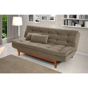 Este sofá cama acomoda tranquilamente 3 pessoas sentadas e duas deitadas, ele pode ser com até 3 posições diferentes, espumas de alto conforto com a densidade tanto no assento como no encosto Espuma D-33, com percintas elástica e molas bonel, pés e base em madeira maciça, acompanha 2 almofadas que podem ser como travesseiro.