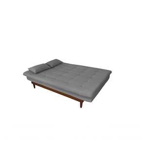 Este sofá cama acomoda tranquilamente 3 pessoas sentadas e duas deitadas, ele pode ser utilizado com até 3 posições diferentes, espumas de alto conforto com a densidade tanto no assento como no encosto Espuma D-33, com percintas elástica e molas bonel, pés e base em madeira maciça, acompanha 2 almofadas que podem ser utilizado como travesseiro.