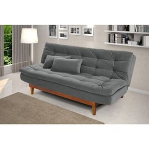 Este sofá cama acomoda tranquilamente 3 pessoas sentadas e duas deitadas, ele pode ser com até 3 posições diferentes, espumas de alto conforto com a densidade tanto no assento como no encosto Espuma D-26, com percintas elástica e molas bonel, pés e base em madeira maciça, acompanha 2 almofadas que podem ser como travesseiro.