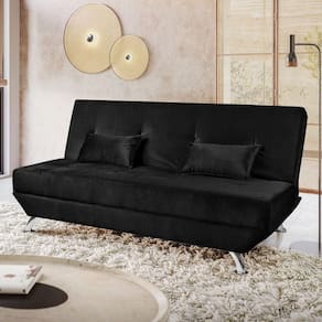 Sofá Cama Dubai Veludo Turkay Speciale Home Turkay Black A linha de sofa cama e composta por produtos versateis e super funcionais, que complementam qualquer estilo de decoracao. Na Star Confort ate o basico tem toque especial. De um tom diido ao seu ambiente com esse produto. Caracteristicas: Sofa Cama Material da Estrutura: Madeira de Eucalipto Material e Densidade da Espuma: Poliuretano. D26 sem carga Revestimento: Veludo Turkay Possui Pes: Sim. Tipo de Pe: Pes Madeira Palito Possui Frame: Nao Manual de Montagem: Nao Complexidade da Montagem: Baixa Diferenciais: Espuma de alta qualidade. Design moderno. Costura resistente. Catraca vira cama Estrutura resistente Molas espiral Percintado