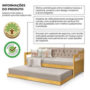 Com Detalhe Estofado Capitonê Tecido Estofado: Veludo Cor Estofado: Bege Estrutura em Madeira Cor Estrutura: Imbuia Com estrado de Ripas de MDF 9mm