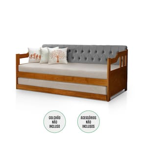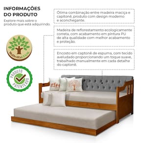 Com Detalhe Estofado Capitonê Tecido Estofado: Veludo Cor Estofado: Cinza Estrutura em Madeira Cor Estrutura: Castanho Com estrado de Ripas de MDF 9mm