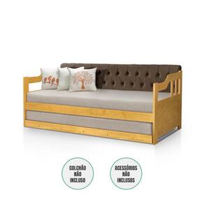 Com Detalhe Estofado Capitonê Tecido Estofado: Veludo Cor Estofado: Marrom Estrutura em Madeira Cor Estrutura: Imbuia Com estrado de Ripas de MDF 9mm
