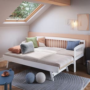Conheça o Sofá Cama Andover, a combinação perfeita de estilo e versatilidade para o seu espaço! Com um acabamento em pintura UV, este sofá não apenas encanta com seu design elegante, mas também garante durabilidade e resistência, ideal para o dia a dia. Com um mecanismo prático, o Sofá Cama Andover transforma-se facilmente em uma confortável cama, perfeito para receber visitas inesperadas ou para momentos de descanso. Sua cama auxiliar com estrutura em madeira maciça e rodízios fixos proporcionam robustez e estabilidade, enquanto o estilo contemporâneo se adapta a qualquer decoração. Transforme sua sala com o Sofá Cama Andover e aproveite o melhor em conforto e funcionalidade. Não perca a chance de ter uma peça multifuncional que valoriza o seu ambiente! Produto Montado: Sim Acompanha Almofadas extras: Não Almofada do assento: Não Possui Almofada do encosto: Não Possui Altura do assento até o chão: 31.2000 Altura do Braço: 70 cm Altura do Encosto: 52,5 cm Altura dos Pés: 30 cm Ambiente Principal: Sala de Estar codigo_ean: 7909903962237 Complexidade da Montagem: Baixa: pode ser montado por uma pessoa sozinha Cor: Branco Cor do Produto: Branco Enchimento do Braço: Não possui Itens Inclusos: 1 Sofá Cama, Cama Auxiliar e Manual de Montagem Linha ou Coleção: Linha Wood Manual de Montagem e Instalação: https://product-hub-prd.madeiramadeira.com.br/956540/documents/d68fc70f-c932-41c2-a0a5-00b66912eb5e242729412701728071518104.pdf Material dos Pés: Madeira Maciça Medida como Cama (A x L x P): 79cm x 195cm x 165cm Modelo: Sofá Fixo Necessita Montagem: Sim Origem do Produto: Nacional Peso: 35,4 kg Pet Friendly: Não Possui Baú: Não Possui Percintas Elásticas: Não Possui Pés: 08 Possui Rodízio: Sim Quantidade de Itens: 2 Reclinável: Não Recomendações de Uso, Manutenção e Limpeza: Deve ser feita com pano macio e seco ou levemente umedecido com água e sabão neutro. Não devem ser utilizados abrasivos como palha de aço e objetos cortantes. Sistema de Montagem: Parafusos e Minifix Tecido Predominante: Não Possui Tipo de Assento: Fixo Tipo de Encosto: Fixo Tipo de Mola: Não Possui