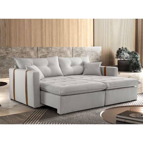 Suavidade e conforto em sua casa com o Sofá cama Lisboa, que possui encosto reclinável, assento com Pillow de molas ensacadas , percinta elástica tipo italiana para maior durabilidade, fibra siliconada, assento retrátil com rodízios que facilitam seu movimento.