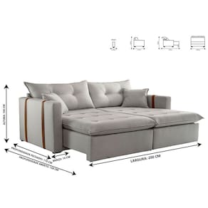 Tipo: Sofá 3 lugares Cama, Retrátil e Reclinável