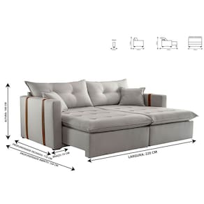 Suavidade e conforto em sua casa com o Sofá cama Lisboa, que possui encosto reclinável, assento com Pillow de molas ensacadas , percinta elástica tipo italiana para maior durabilidade, fibra siliconada, assento retrátil com rodízios que facilitam seu movimento.