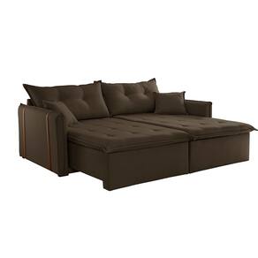 Características: Tipo: Sofá 3 lugares Cama, Retrátil e Reclinável Marca: TXR Modelo: SP Estrutura: Madeira de origem certificada, Eucalipto Revestimento: Em tecido Veludo Bege Pés: Em madeira reflorestada Assento: Retrátil - mola Bonnel + percinta tipo Italiana + Pillow com espuma D28 Encosto: Reclinável em 3 estágios. Braços: 12,5 cm Retrátil e Reclinável: Com mecanismo em aço
