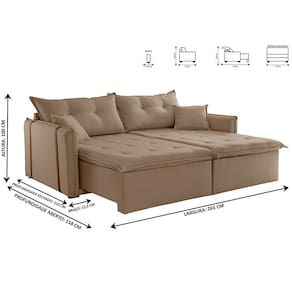 Sofá Cama e Reclinável SP 2,65m 04 Lugares Txr Suavidade e conforto em sua casa com o Sofá cama SP, que possui encosto reclinável, assento com Pillow, percinta elástico tipo italiana para maior durabilidade, fibra siliconada, assento retrátil com rodízios que facilitam seu movimento.