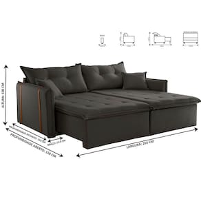 Tipo: Sofá 3 lugares Cama, Retrátil e Reclinável