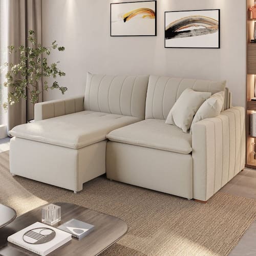 Ao estender o assento, transforma-se em um sofá-cama amplo e confortável, perfeito para hóspedes e descanso prolongado. Produto Montado: Sim Acompanha Almofadas extras: 02 Almofada do assento: Fixa Almofada do encosto: Removível Altura do assento até o chão: 50.0000 Altura do Braço: 64 cm Altura do Encosto: 60 cm Altura dos Pés: 5 cm Altura Máxima dos Pés: 5.0000 Ambiente Principal: Sala de Estar codigo_ean: 7900288220684 Complexidade da Montagem: Baixa: pode ser montado por uma pessoa sozinha Cor: Cru Cor do Produto: Cru Densidade do Assento: D-28 Enchimento do Assento: Espuma Enchimento do Braço: Espuma D-23 Enchimento do Encosto: Fibra Siliconada Estilo de Braço: Braços Quadrados Firmeza do Assento: Médio Itens Inclusos: 1 Sofá, 2 Almofadas e Kit Ferragens Largura do Braço: 15 cm Linha ou Coleção: Uruguai Manual de Montagem e Instalação: https://product-hub-prd.madeiramadeira.com.br/768332640/documents/ba2bcb49-6f41-47b1-90c5-35dc30253d81317803759641756842400358.pdf Marca: Conceito Estofados Material da Corrediça do Sofá: Madeira Material dos Pés: Madeira Medida como Cama (A x L x P): 50x200x140 Modelo: Retrátil e Reclinável Necessita Montagem: Sim Nível de Conforto: Intermediário Origem do Produto: Nacional Peso: 94 kg Pet Friendly: Não Possui Baú: Não Possui Percintas Elásticas: Sim Possui Pés: 05 Possui Rodízio: Sim Profundidade Quando Estendido: 142 cm Profundidade quando extendido: 142.0000 Reclinável: Sim Recomendações de Uso, Manutenção e Limpeza: Limpar com pano seco ou levemente úmido com água, apenas. Revestimento do Braço: Bouclê Sistema de Montagem: Parafusos e encaixes Tecido Predominante: Bouclé Tipo de Assento: Fixo Tipo de Mola: Molas Bonnel Tipo de Sofá: Sofá Cama Marca: Não Informado