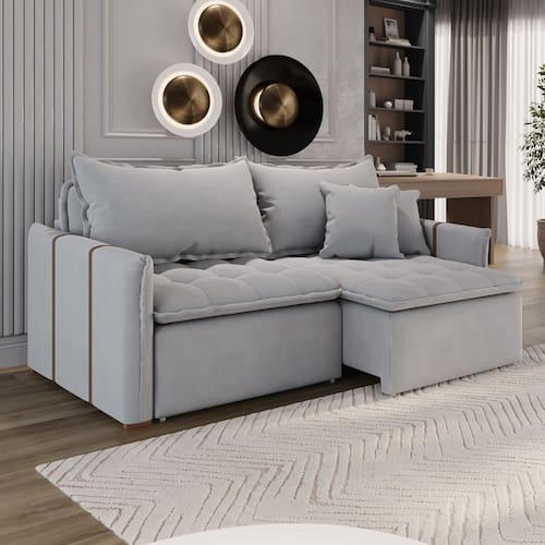 Transforme sua sala com o equilíbrio perfeito entre aconchego e elegância. Com 200cm de largura, o Sofá Creta é ideal para salas médias e grandes, unindo conforto e presença. Possui encostos em fibra siliconada macia, assento firme na medida certa e revestimento em bouclê, que adiciona textura sofisticada e combina facilmente com diferentes estilos de decoração. Retrátil, oferece momentos de relax ao estender o assento e, quando necessário, transforma-se em um sofá-cama amplo e confortável, perfeito para receber visitas ou maratonar séries. Seus braços de 10cm garantem apoio prático e arrematam o design contemporâneo. Produto Montado: Sim Acompanha Almofadas extras: 02 Almofada do assento: Fixa Almofada do encosto: Removível Altura do assento até o chão: 50.0000 Altura do Braço: 64 cm Altura do Encosto: 60 cm Altura dos Pés: 5 cm Altura Máxima dos Pés: 5.0000 Ambiente Principal: Sala de Estar codigo_ean: 7900288228925 Complexidade da Montagem: Baixa: pode ser montado por uma pessoa sozinha Cor: Cinza Claro Cor do Produto: Cinza Claro Densidade do Assento: D-28 Enchimento do Assento: Espuma Enchimento do Braço: Espuma D-23 Enchimento do Encosto: Fibra Siliconada Estilo de Braço: Braços Quadrados Firmeza do Assento: Médio Itens Inclusos: 1 Sofá, 2 Almofadas e Kit Ferragens Largura do Braço: 10 cm Linha ou Coleção: Creta Manual de Montagem e Instalação: https://product-hub-prd.madeiramadeira.com.br/652976992/documents/1981c198-c392-42d2-9719-d5a74aabfbed3195640596417575926562658.pdf Marca: Conceito Estofados Material da Corrediça do Sofá: Madeira Material dos Pés: Madeira Modelo: Retrátil e Reclinável Necessita Montagem: Sim Nível de Conforto: Intermediário Origem do Produto: Nacional Peso: 90 kg Pet Friendly: Não Possui Baú: Não Possui Percintas Elásticas: Sim Possui Pés: 05 Possui Rodízio: Sim Profundidade Quando Estendido: 142 cm Profundidade quando extendido: 142.0000 Quantidade de Itens: 1 Reclinável: Sim Recomendações de Uso, Manutenção e Limpeza: Limpar com pano seco ou levemente úmido com água, apenas. Revestimento do Braço: Linho Sistema de Montagem: Parafusos e encaixes Tecido Predominante: Linho Tipo de Assento: Fixo Tipo de Mola: Molas Bonnel Tipo de Sofá: Sofá Cama Marca: Não Informado