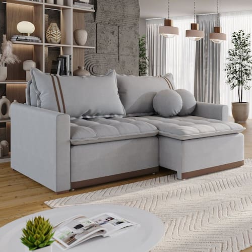 Ao estender o assento, transforma-se em um sofá-cama amplo e confortável, perfeito para hóspedes e descanso prolongado. Produto Montado: Sim Acompanha Almofadas extras: 02 Almofada do assento: Fixa Almofada do encosto: Removível Altura do assento até o chão: 50.0000 Altura do Braço: 64 cm Altura do Encosto: 60 cm Altura dos Pés: 5 cm Altura Máxima dos Pés: 5.0000 Ambiente Principal: Sala de Estar codigo_ean: 7900288229878 Complexidade da Montagem: Baixa: pode ser montado por uma pessoa sozinha Cor: Cinza Claro Cor do Produto: Cinza Claro Densidade do Assento: D-28 Enchimento do Assento: Espuma Enchimento do Braço: Espuma D-23 Enchimento do Encosto: Fibra Siliconada Estilo de Braço: Braços Quadrados Firmeza do Assento: Médio Itens Inclusos: 1 Sofá, 2 Almofadas e Kit Ferragens Largura do Braço: 10 cm Linha ou Coleção: Flórida Manual de Montagem e Instalação: https://product-hub-prd.madeiramadeira.com.br/962666403/documents/461054bc-4d4c-4805-94fc-8fecd08184843197156596417576098424993.pdf Marca: Conceito Estofados Material da Corrediça do Sofá: Madeira Material dos Pés: Madeira Modelo: Retrátil e Reclinável Necessita Montagem: Sim Nível de Conforto: Intermediário Origem do Produto: Nacional Peso: 90 kg Pet Friendly: Não Possui Baú: Não Possui Percintas Elásticas: Sim Possui Pés: 05 Possui Rodízio: Sim Profundidade Quando Estendido: 142 cm Profundidade quando extendido: 142.0000 Quantidade de Itens: 1 Reclinável: Sim Recomendações de Uso, Manutenção e Limpeza: Limpar com pano seco ou levemente úmido com água, apenas. Revestimento do Braço: Linho Sistema de Montagem: Parafusos e encaixes Tecido Predominante: Linho Tipo de Assento: Fixo Tipo de Mola: Molas Bonnel Tipo de Sofá: Sofá Cama Marca: Não Informado
