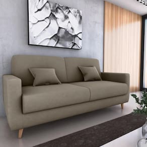 O Sofá Cama Emília oferece o diferencial de abertura com sistema de catraca de três pinos, dispondo de 3 posições (sentado, leitura e descanso). Este Sofá é produzido com madeira de reflorestamento e para dar mais flexibilidade e resistência são usadas percintas elásticas, e espuma de ótima qualidade, acomoda até três pessoas como sofá e duas como cama, acompanha duas almofadas.