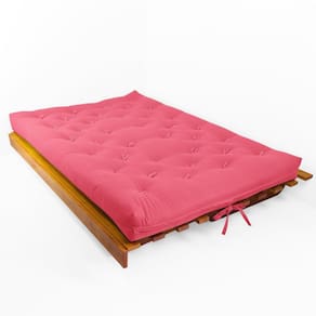 Material e estrutura: O colchão futon casal é fabricado em tecido de alta qualidade em Sarja Peletizada, seu enchimento é de mantas de algodão natural, manta de fibra siliconada estruturado por espuma ortopédica D28, possui amarras nas extremidades, para melhor fixação do futon. A estrutura é produzida em madeira nobre maciça de grápia, com pintura natural.