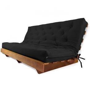 Material e estrutura: O colchão futon casal é fabricado em tecido de alta qualidade em Sarja Peletizada, seu enchimento é de mantas de algodão natural, manta de fibra siliconada estruturado por espuma ortopédica D28, possui amarras nas extremidades, para melhor fixação do futon. A estrutura é produzida em madeira nobre maciça de grápia, com pintura natural.