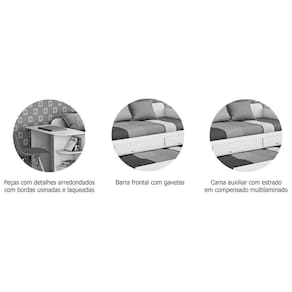 O Sofá Cama Helena com Escrivaninha da Permóbili Baby é uma solução prática e encantadora para o quarto infantil. Fabricado em MDF com pintura UV e acabamento em laca, combina funcionalidade com um visual delicado e moderno. Possui 2 gavetas frontais com corrediças metálicas, ideais para organizar roupas de cama ou brinquedos. A escrivaninha embutida com nichos proporciona um espaço inteligente para estudos e atividades, enquanto os detalhes arredondados com bordas usinadas e laqueadas trazem e sofisticação ao móvel. A cama auxiliar com rodízios oferece praticidade para o dia a dia.