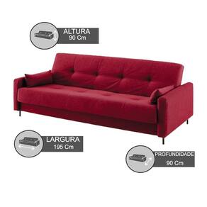 O estofado Sofá Cama de 2 lugares Jazz oferece praticidade, beleza, conforto e sofisticação para sua casa. Sua estrutura é feita de madeira de eucalipto renovável, e o encosto é removível. O assento é composto por percintas elásticas e molas bonnel, combinadas com espuma D-28 soft, tornando o produto um verdadeiro sinônimo de conforto. Este estofado é ideal para quem busca qualidade e satisfação e praticidade. Produto Montado: Não Acompanha Almofadas extras: Não Almofada do assento: Fixa Almofada do encosto: Fixa Altura do assento até o chão: 20.0000 Altura do Encosto: 70 cm Ambiente Principal: Sala de Estar Bipartida: Não codigo_ean: 7900288041500 Cor: Vermelho Cor do Produto: Vermelho Densidade do Assento: D-28 Enchimento do Assento: Espuma Estilo de Braço: Braços Redondos Firmeza do Assento: Médio Gramatura do Tecido: 350 g/m² Itens Inclusos: 1 Estofado Largura do Braço: 15 cm Marca: Denken Material dos Pés: Madeira Necessita Montagem: Não Origem do Produto: Nacional Peso: 59,8 kg Peso Suportado por m²: 120 kg/m² Pet Friendly: Não Porta Copos: Não Possui Baú: Não Possui Entrada USB: Não Possui Mola: Não Possui Percintas Elásticas: Sim Possui Pés: 05 Possui Rodízio: Não Quantidade de Itens: 1 Recomendações de Uso, Manutenção e Limpeza: Pano úmido com água Suporta Até (kg): 120 kg Tecido Predominante: Veludo Tipo de Encosto: Fixo Tipo de Mola: Não Possui Tipo de Sofá: Sofá Cama