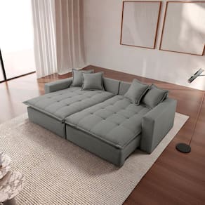 Em ambientes pequenos, a otimização do espaço é um ponto chave e para garantir maior conforto e mobilidade, o Sofá Cama Júpiter possui braços de apenas 15cm de largura, proporcionando um maior aproveitamento da área disponível na sua sala de estar. Produto Montado: Sim Almofada do assento: Fixa Almofada do encosto: Removível Altura do assento até o chão: 48.0000 Altura do Braço: 60 cm Altura do Encosto: 46 cm Altura dos Pés: 3 cm Ambiente Principal: Sala de Estar codigo_ean: 7909903909881 Complexidade da Montagem: Média: pode ser montado por mais de uma pessoa e/ou necessite de maior conhecimento para montagem Consistência do Assento: Médio Cor: Cinza Cor do Produto: Cinza Densidade do Assento: D-28 Enchimento do Assento: Hyper Soft Enchimento do Braço: Espuma D-14 Enchimento do Encosto: Fibra Siliconada Firmeza do Assento: Médio Informações Complementares: 04 Almofadas Decorativas Itens Inclusos: 01 Sofá Cama com 04 Almofadas Decorativas e Manual de Montagem Linha ou Coleção: Universo Manual de Especificação Técnica: https://product-hub-prd.madeiramadeira.com.br/938660/documents/8ce3b45d-d47f-42fb-b838-bc89bffe43882302819204117254686625094.pdf Manual de Montagem e Instalação: https://product-hub-prd.madeiramadeira.com.br/938660/documents/e40df5ee-84e8-4d30-9a6f-d21262e546a62302818204117254686594109.pdf Material dos Pés: Pinus Medida como Cama (A x L x P): 48 x 200 x 150 Modelo: Retrátil e Reclinável Necessita Montagem: Sim Origem do Produto: Nacional Peso: 100,8 kg Pet Friendly: Não Possui Baú: Não Possui Percintas Elásticas: Sim Possui Pés: 08 Possui Rodízio: Sim Quantidade de Itens: 150 Reclinável: Sim Recomendações de Uso, Manutenção e Limpeza: Utilizar Pano Seco Revestimento do Assento: Linho Revestimento do Braço: Linho Revestimento do Encosto: Linho Sistema de Montagem: Encaixe Tecido Predominante: Linho Tipo de Assento: Regulável Tipo de Encosto: Regulável Tipo de Mola: Molas Ensacadas