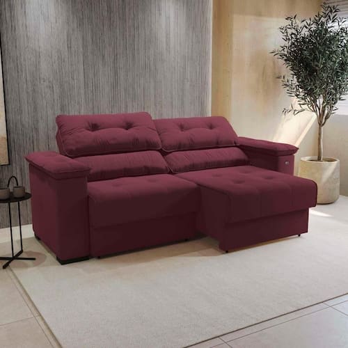 Cor: Veludo Bordô | Largura: 230cm | Tipo de produto: Sofá | Altura: 114cm | Quantidade de lugares: 2 | Inclui manual de montagem: Sim | É reclinável: Sim | Profundidade: 96cm | Requer montagem: Sim | Quantidade de caixas de embalagem: 2