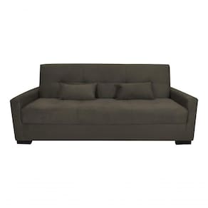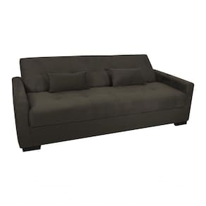 Este sofá é produzido com madeira de reflorestamento e para dar maisibilidade e resistência são usadas percintas elásticas, molas espirais e espuma de ótima qualidade, possui um tamanho diferenciado que pode acomodar até três pessoas como sofá e duas como cama.